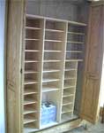 無垢の建具に作りつけの玄関収納を。 また、化学物質を排するために全ての 収納の壁や天井は吸湿性に優れた桐 材を使用しました。